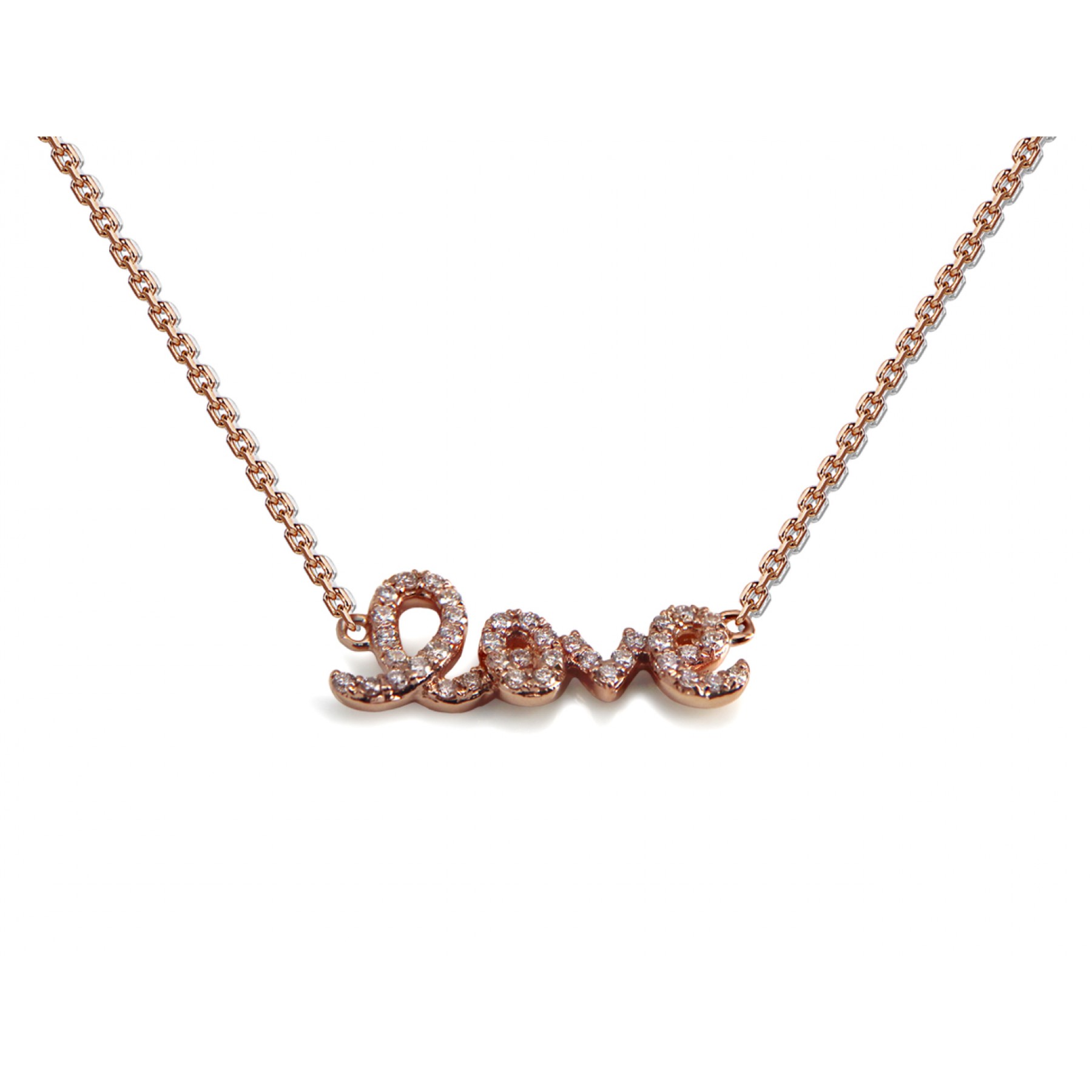 14 Karat Rose Gold love necklace with white Diamonds