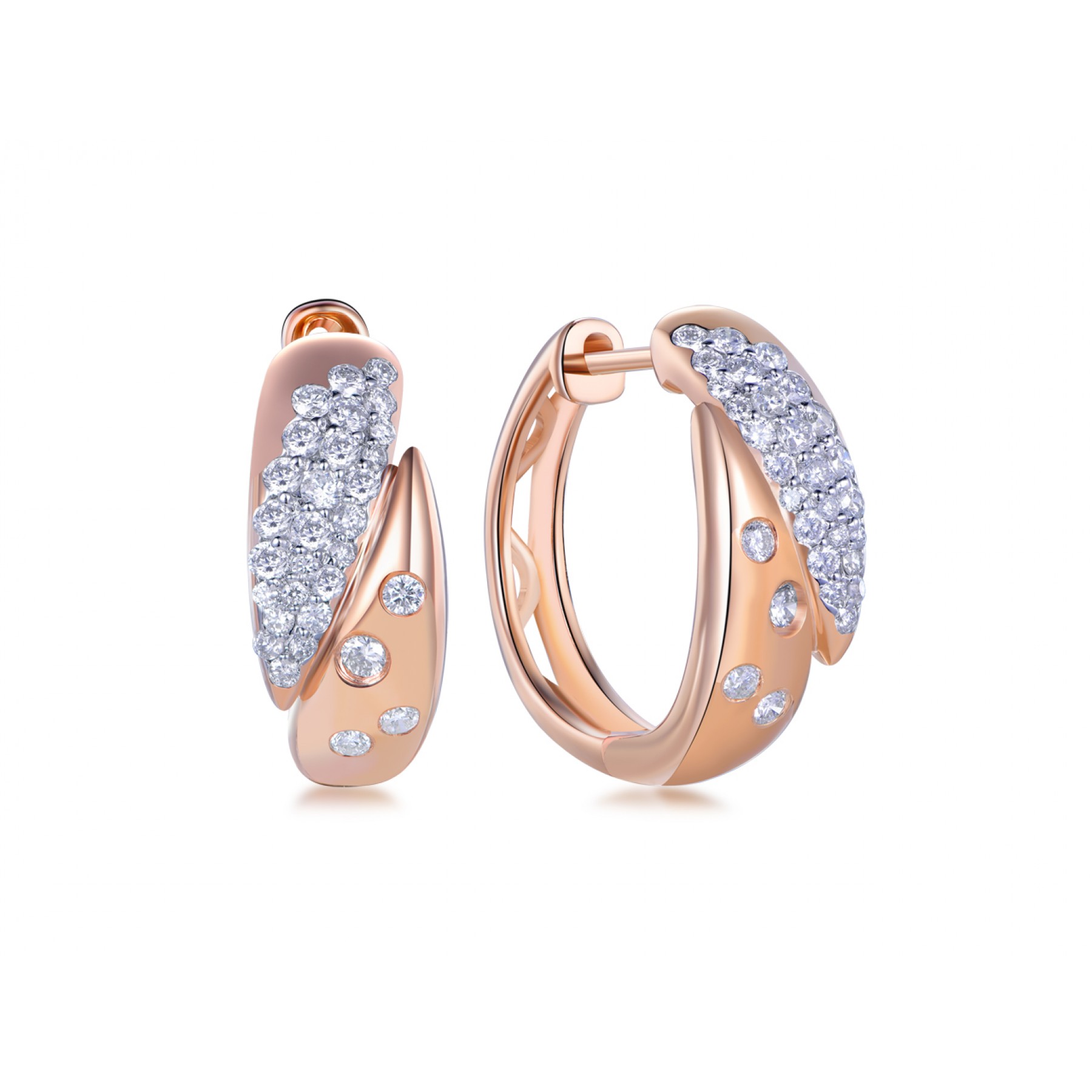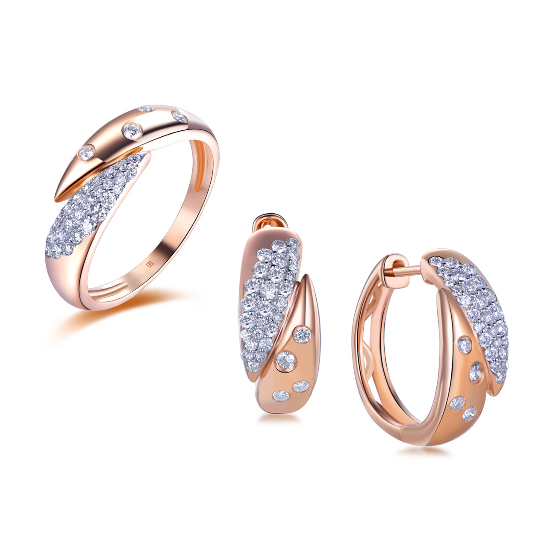 14 Karat Rose Gold open ring jewellery set: ring & earrings with white Diamonds