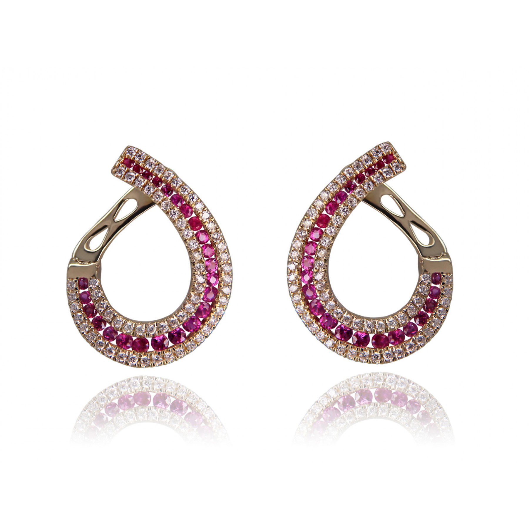 Hoop-stud earrings with white Diamonds & pink Sapphire.