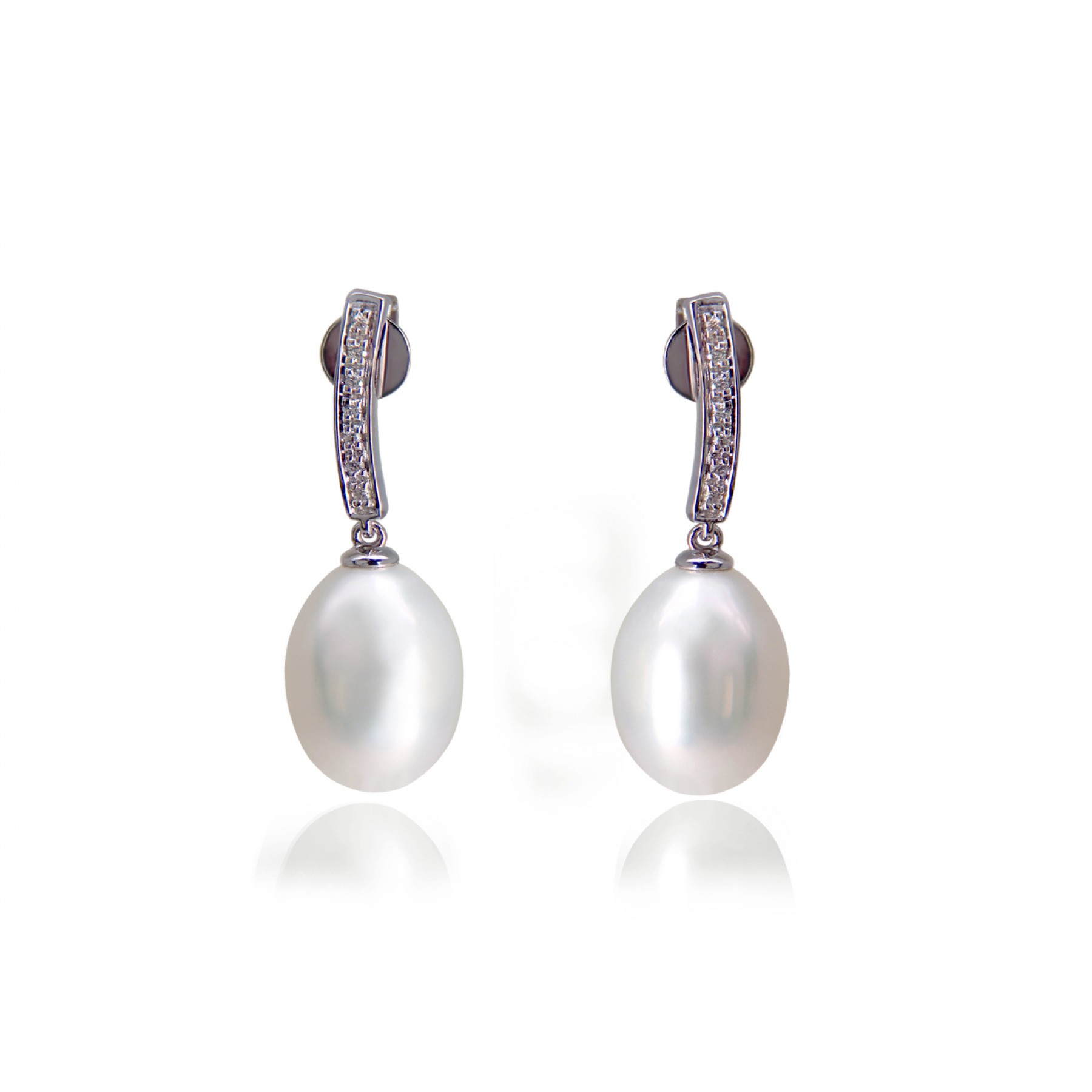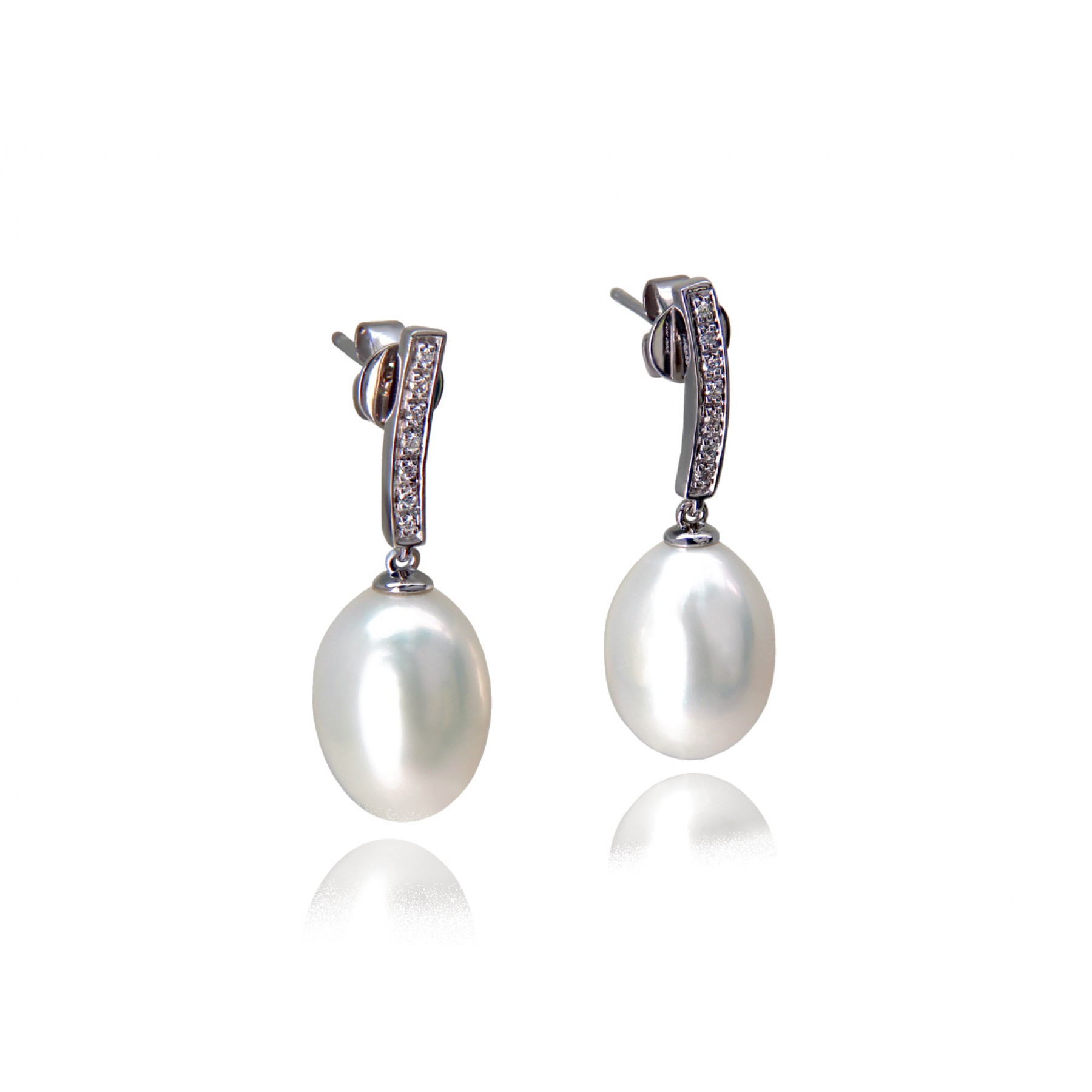 14 Karat White Gold drop earrings with white Pearl & Diamond